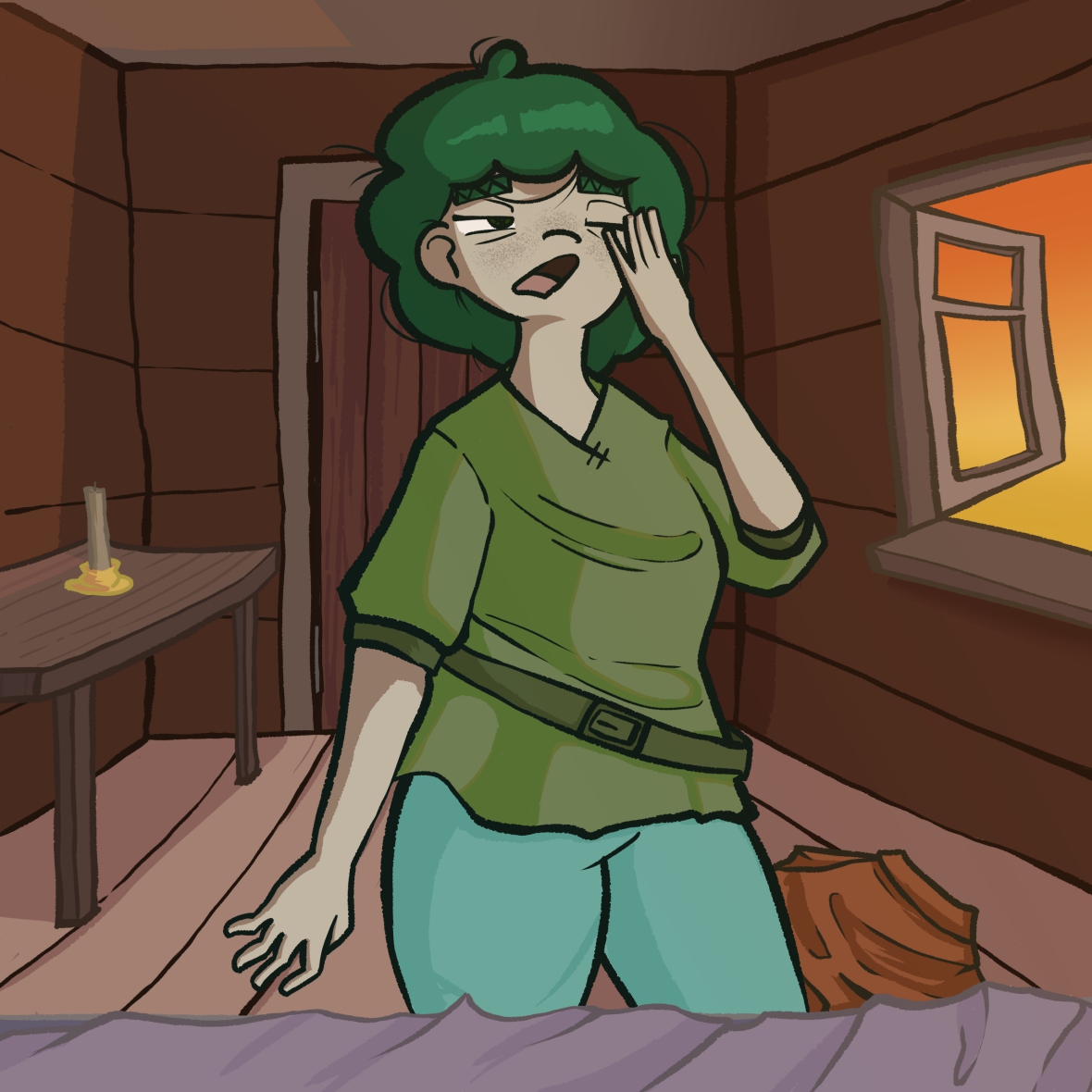 Присмотревшись, Кёрли заметил, что на голове у Эдит был полный кошмар. Ее волосы взъерошились и будто увеличились в объеме, что – уж извините – выглядело довольно забавно. Могу только предположить, что во всем была виновата резинка для волос, которая случайно сползла на подушку во время сна.