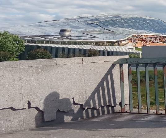 Обойдя Дом с другой стороны и выйдя на перекрёсток Ленинградского проспекта и Беговой улицы, меня повели на остаток старого футбольного стадиона, которого уже давно и нет на свете. Остаток представлял из себя стену высотой метров пять. К этой самой стене приделали пешеходную дорожку, чтобы лучше было любоваться «наскальной живописью» в виде старинных фотографий и домом авиаторов.