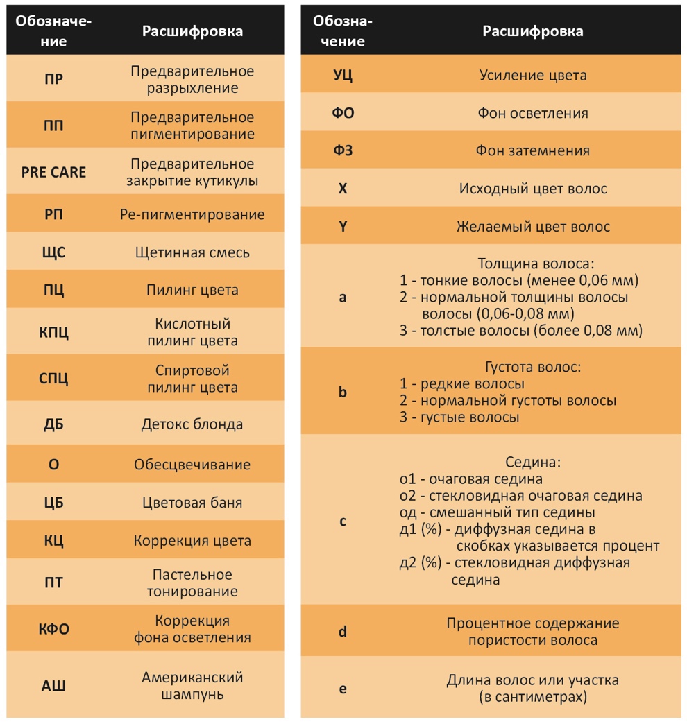 Перед тем, как начинать погружаться в учебник, необходимо отметить один главный факт – любая задача в салоне красоты имеет минимум пять правильных решений. Выбор конкретного алгоритма работы всегда остаётся за вами и возможностью вашего красителя. Это очень хорошо показано в игре, разработанной Александром Кувватовым, «Колорист без изъяна». Там вы можете, используя диагностические данные и заручившись желанием клиента, получить более 10 000 результатов решения поставленных задач. Это очень наглядный метод ситуативности нашей работы, и если у вас будет возможность поиграть командой в данную игру, то очень советуем. Для записи рецептур можно использовать различные методы записи. Как и для решения задач. В данной книге вы выберете тот, который нравится вам. Однако это не означает, что он единственно верный в нашей вселенной. Сразу скажем, что единственно верный – только тот, который нравится вам здесь и сейчас, и не исключено, что через пару лет он будет совершенно другим. Мы всегда использовали вариант схемы записи, представленный ниже: