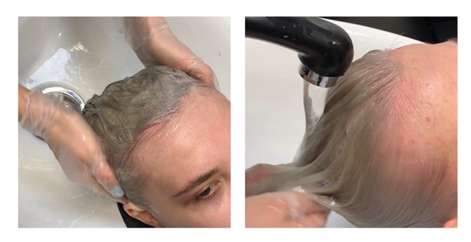· По окончании времени выдержки смойте цветовую баню тёплой проточной водой. Применение шампуня не обязательно. Однако перед тонированием обязательно нанесите кондиционер или средство выравнивания структуры волос.