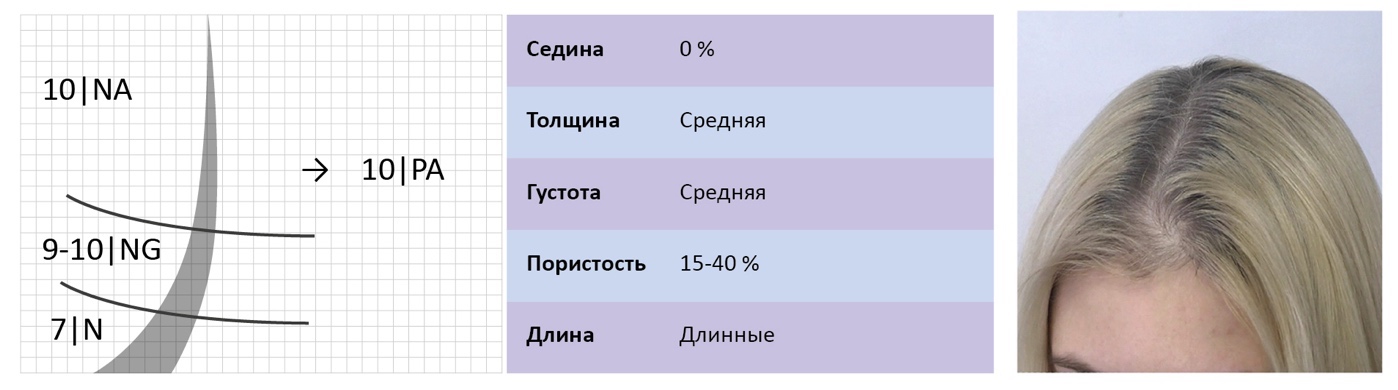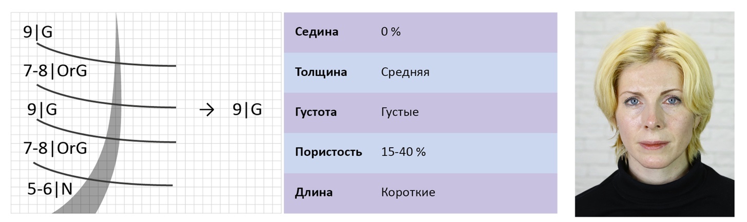 Светлые волосы от природы дают нам больше возможностей в блонде. Во-первых, светловолосым идёт блонд. Чаще всего девушка с русыми натуральными волосами, затемнившая себя в чёрный, выглядит менее гармонично, чем высветленная в блонд. Во-вторых, светлые волосы нам многое прощают в плане качества работы. Что мы имеем ввиду? Например, клиенты с этим типом волос могут себе позволить приходить с отростом корней в 2–3 сантиметра, и вы быстро можете всё поправить. С азиатскими волосами такая история не проходит. Так, если клиент пришёл через три месяца на обесцвечивание, у вас начинаются танцы с бубнами. В-третьих, светлые волосы осветляются в золотистый спектр цветов, поэтому без особой сложности вы получите на них чистый прозрачный цвет.