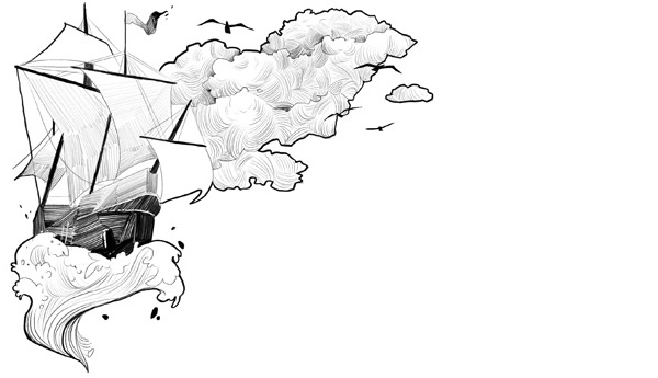 Покуда хватало глаз, вокруг темнобрюхой каравеллы простирались лишь лазурные воды уснувшего моря. Безмятежная морская гладь, кое-где подернутая легкими пенными барашками, отражала белоснежные перья облаков, медленно тающих в лучах восходящего солнца. Тихие всплески волн окутывали судно, переплетались с шелестом ветра, запутавшегося в парусине, и сливались в умиротворяющей песне.