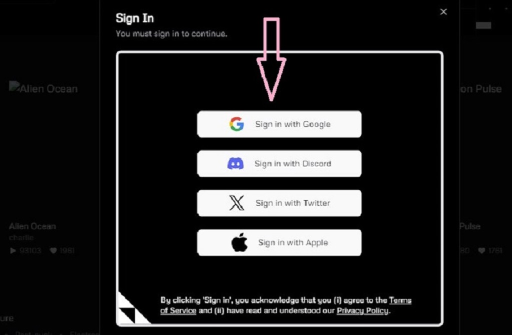 Заходим на страничку и в левом верхнем углу видим ярко-розовую кнопочку «Sign in», что в переводе означает «Войти». После этого вам предлагается способ регистрации: через электронную почту, «Дискорд», «Твиттер» или яблочный гаджет.