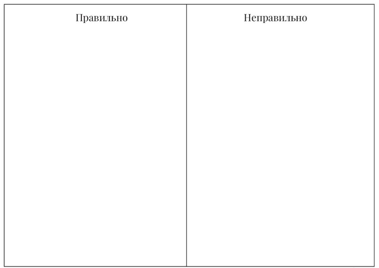 Разобравшись с алгоритмом своей ошибки, заполни ещё одну табличку. В левой колонке напиши, как движение делать правильно. А в правой – как неправильно (как ты делал(-а) раньше).