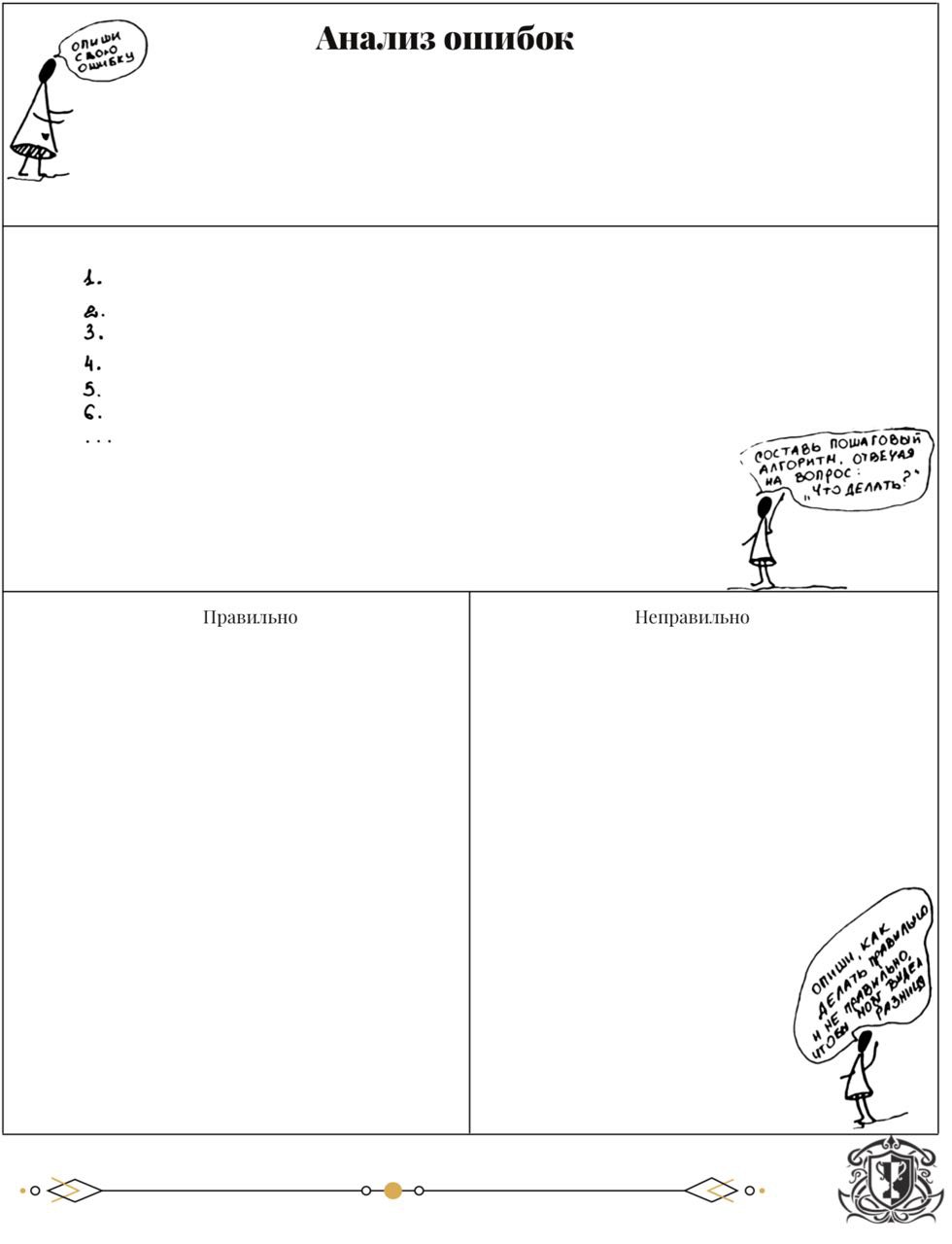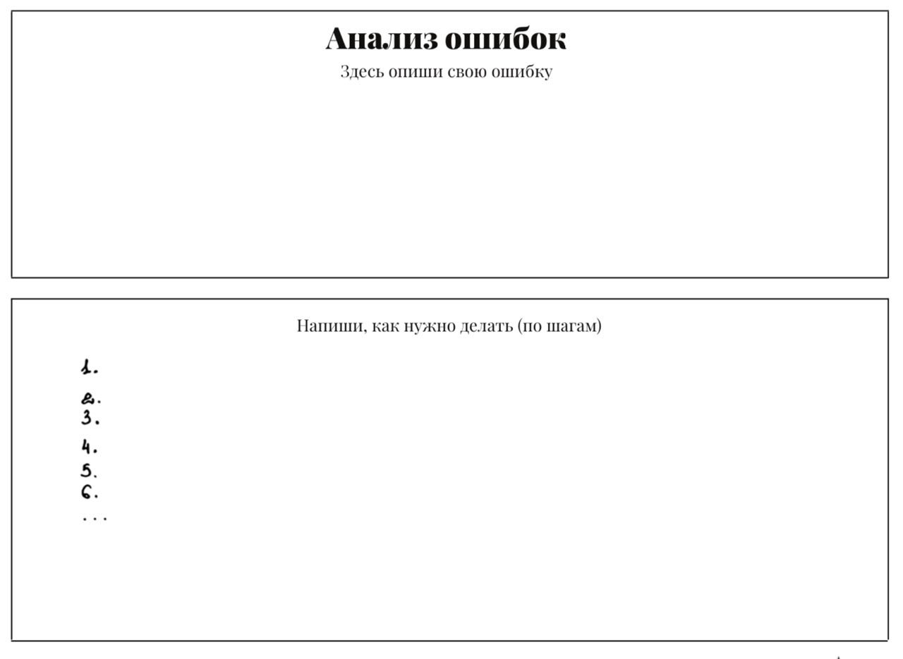 Задача: научиться видеть свои ошибки, анализировать их и искоренять. Составить алгоритм исправления и отработать его на практике.