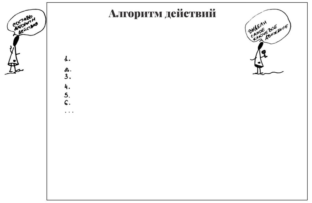 Затем представь своё действие (тот алгоритм, который ты прописал(-а) словами, теперь нужно научиться правильно визуализировать).