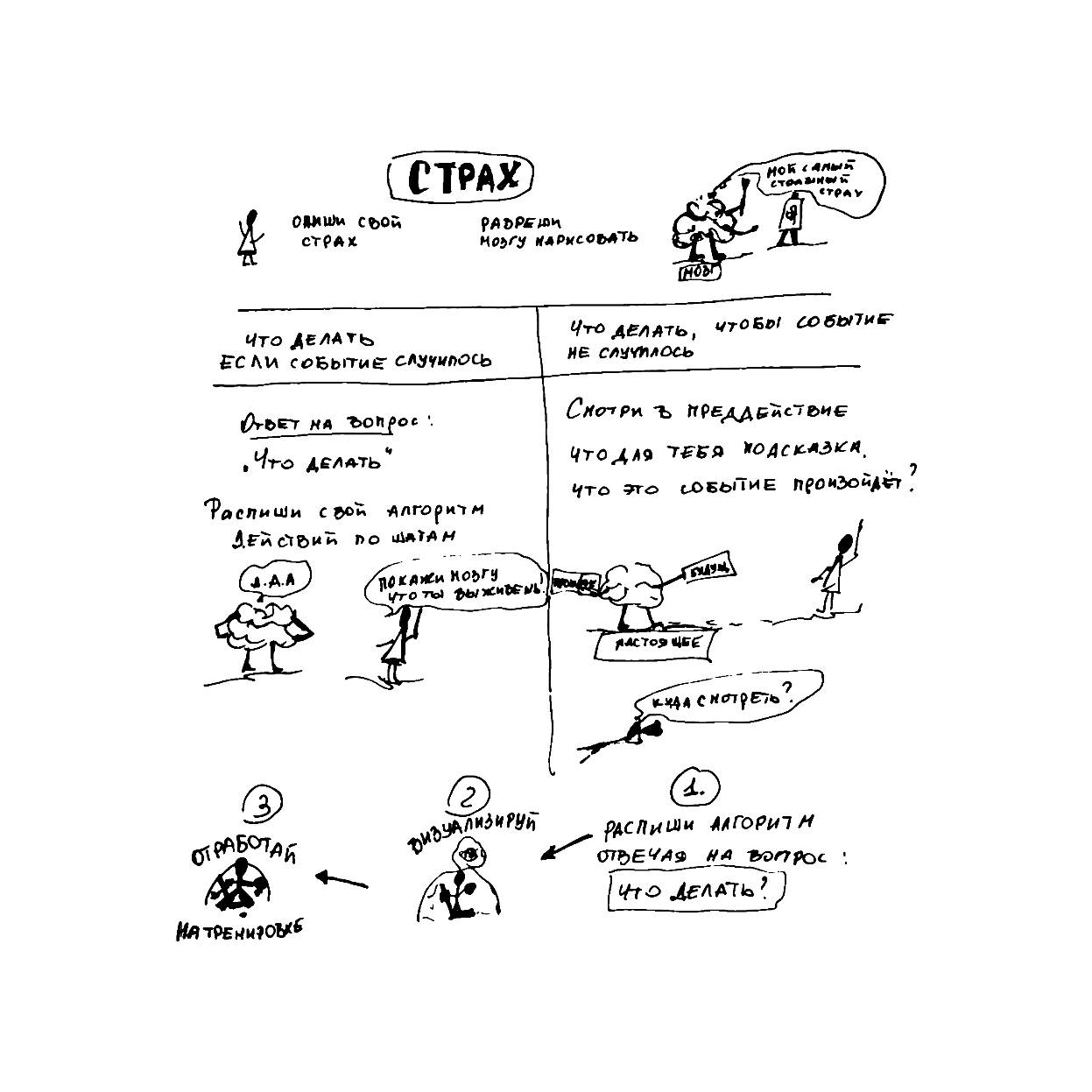 Не нужно бояться картинок, которые присылает тебе твой мозг. Честно спроси себя: «Чего я боюсь?» И твой мозг пришлёт подсказку. А затем спроси у мозга: «Что делать, чтобы страх не случился?» И он тебе подскажет, как поступить по-другому.