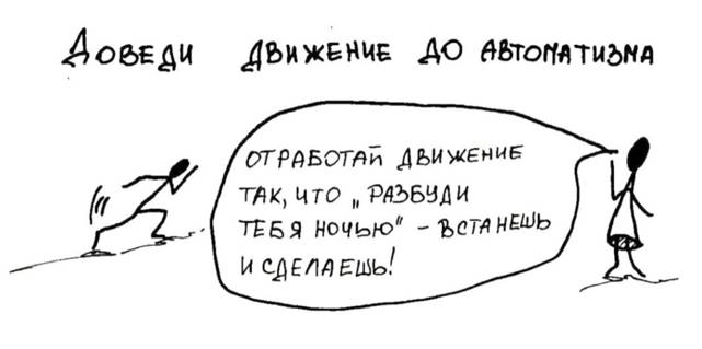Задача: научиться управлять своим телом так, чтобы оно делало то, что нужно. Понять, как правильно представлять движение в голове.