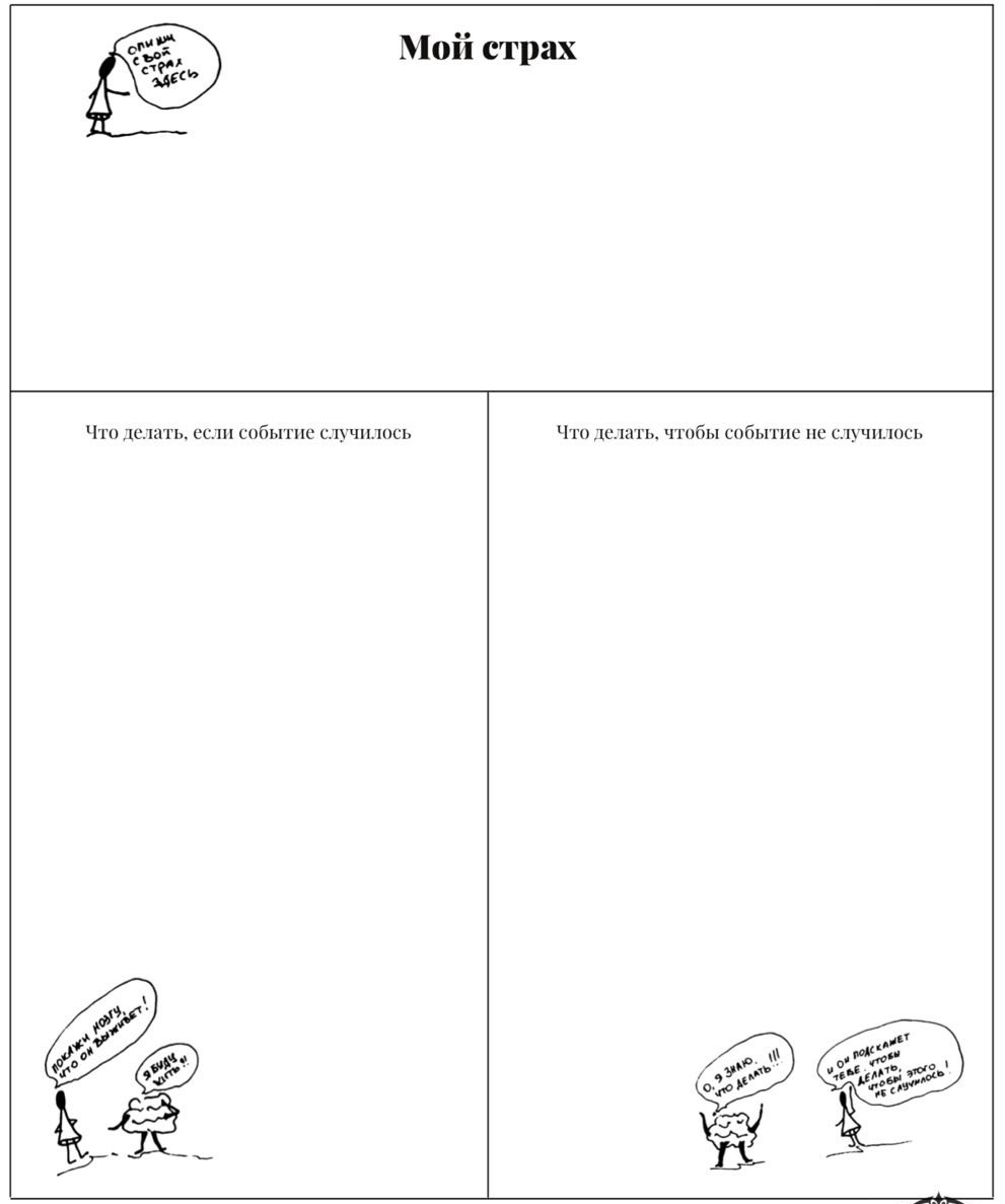 А затем найди ответ на вопрос «Что делать, чтобы страх не случился?» Представь, что у тебя есть возможность вернуться в прошлое и дать себе подсказку. Что бы ты подсказал себе?