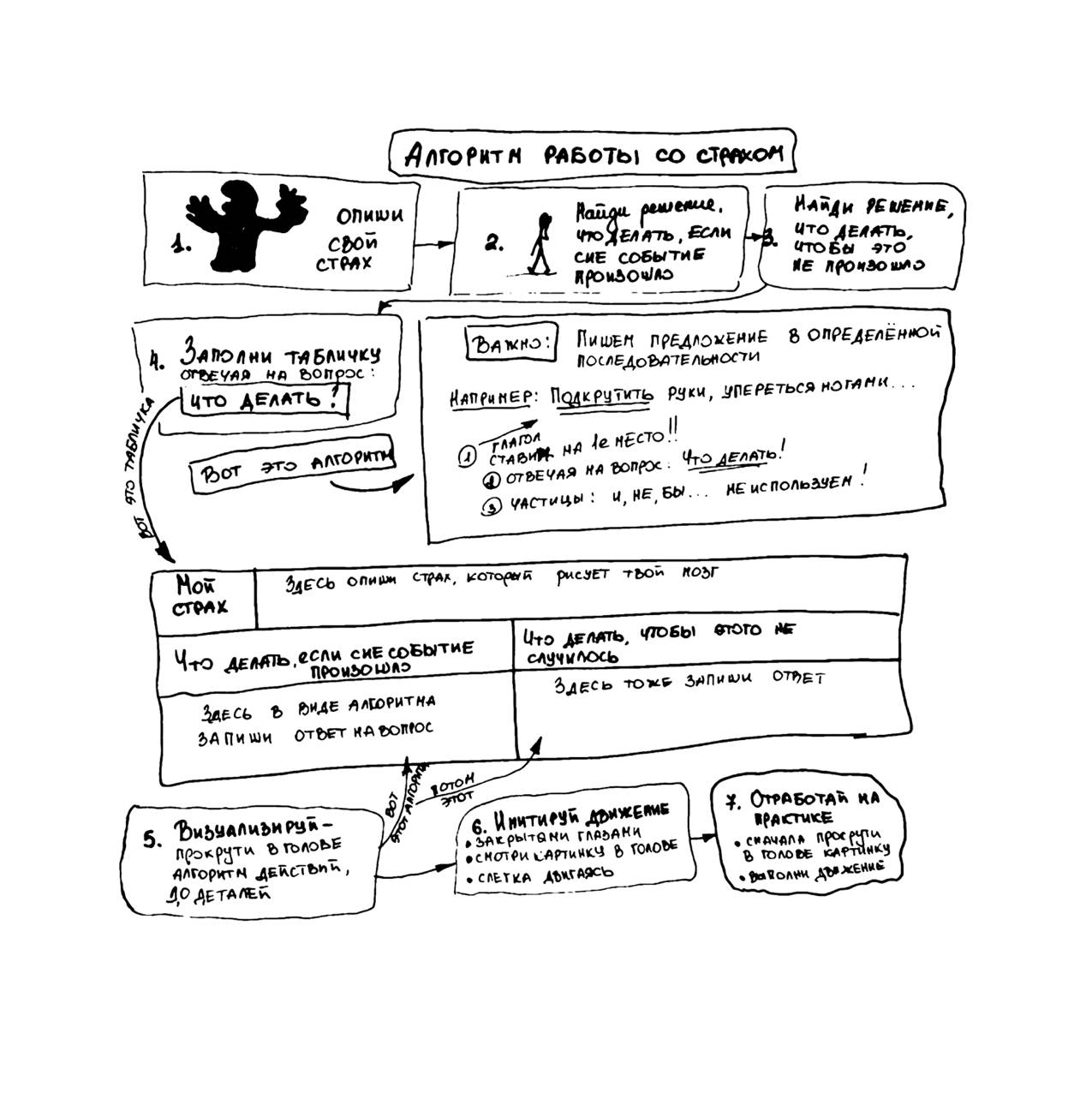 Перечитай таблички, которые ты заполнил (-а). Если ты там написал(-а): «не бояться», то это тебе не поможет. Твой мозг тебя дурит и ленится работать! Он не хочет тебе помогать. У тебя два варианта: либо попробовать ещё раз выполнить вдумчиво все упражнения урока, либо перейти к следующему уроку – постепенно твой мозг поймёт, чего от него хотят, и начнёт с тобой сотрудничать!