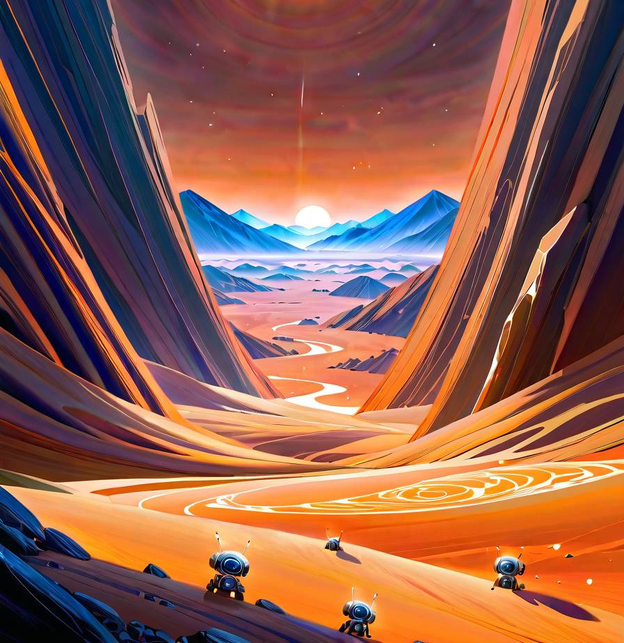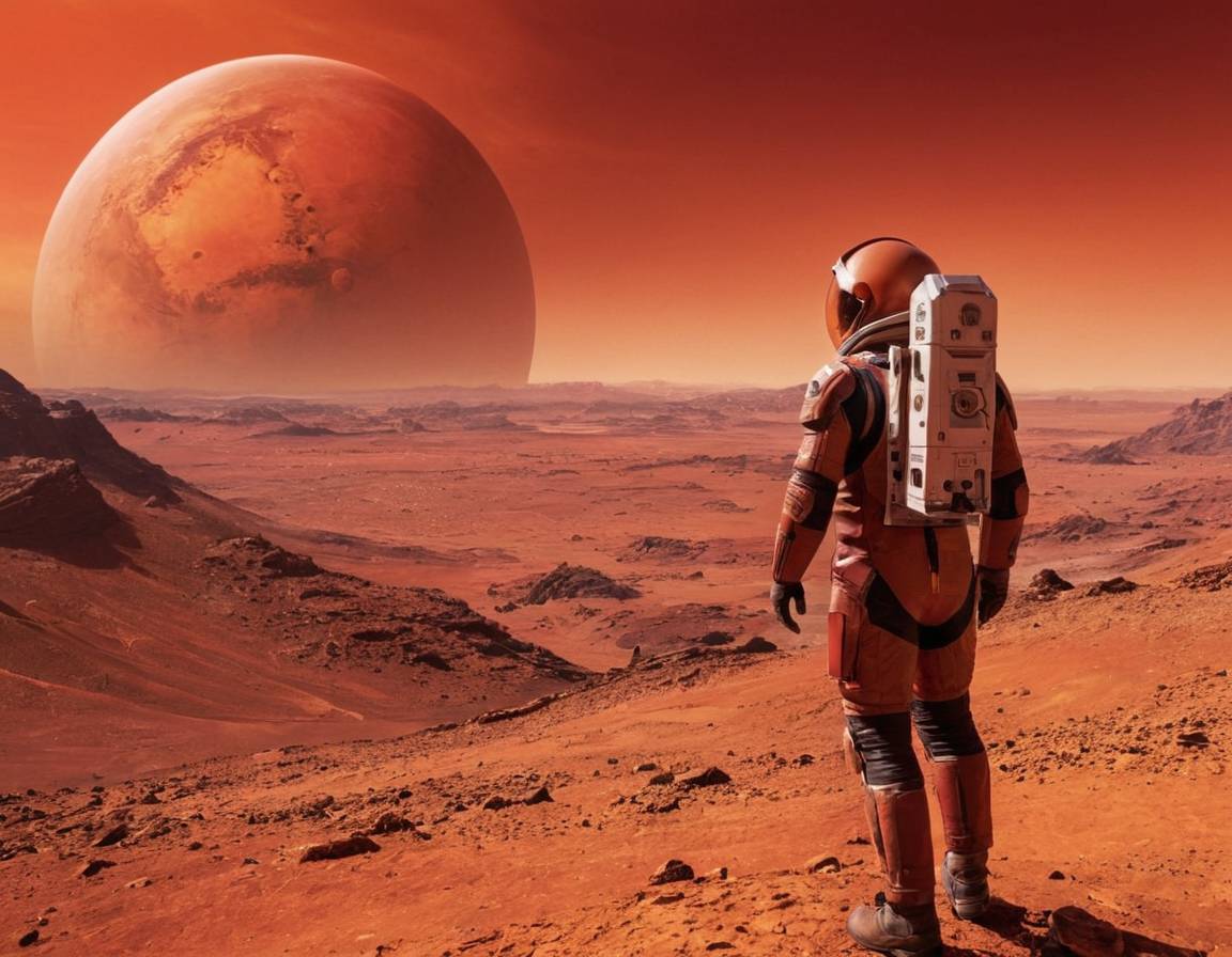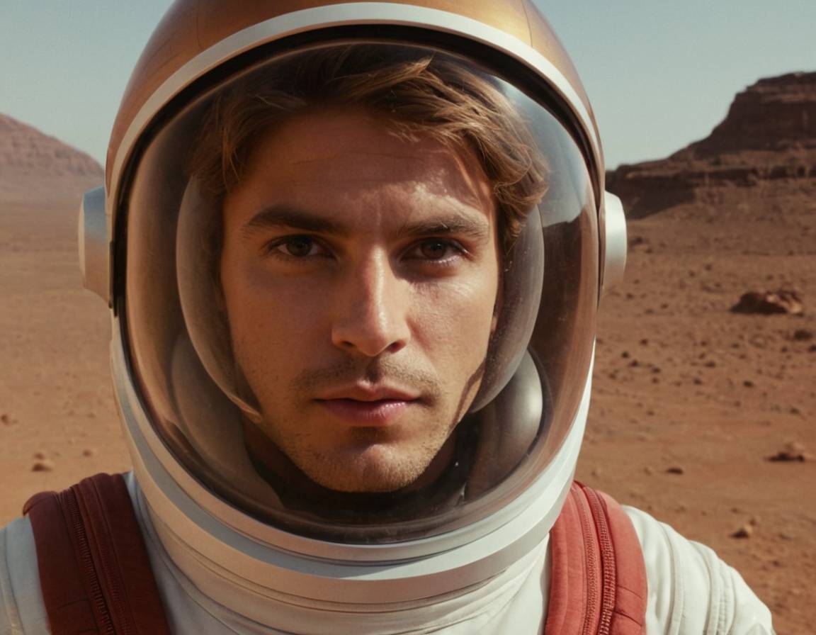 Вокруг царила невероятная красота, будто из другой футуристической реальности. Мы будто бы попали в научно-фантастический фильм в качестве главных героев. Жёлто-коричневая поверхность Марса была неровной: повсюду на панораме возвышались горы или виднелись впадины. Небо было красноватого оттенка, близкого к цвету крови – это немного пугало. Помимо синего Солнца на небе можно было заметить ещё два космических тела: спутники Марса Фобос и Деймос. Они коричневого и белого цвета.