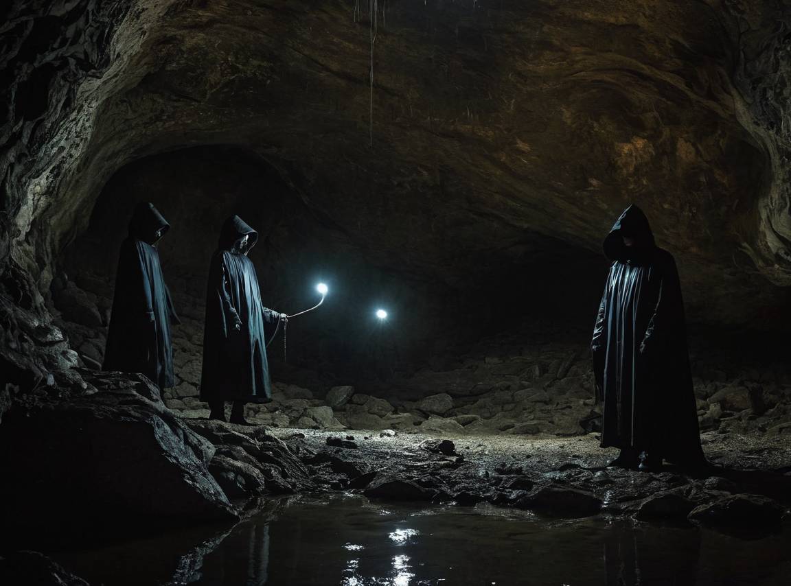 Сатанисты расставляли повсюду свечи. Потом они стали бормотать себе под нос что-то непонятное с закрытыми очами. Диомид понял, что с него хватит. Он насмотрелся на этих сумасшедших, и надо убираться, пока они его не заметили. Диомид тихо, как мышь, прополз за стеной по мягкому мху. Потом он незаметно приподнялся и перешёл гуськом в другой зал. К счастью, оккультисты ничего не заметили, потому что были в трансе, шепча свои странные молитвы. И даже лидер и женщина рядом с ним не увидели парня, так как молились с закрытыми очами. Диомид убедился, что за ним никто не бежит, и продолжил перемещаться дальше, ища себе место для укрытия. Он шёл вдоль реки, но не в туннель Б, где были драгоценные камни, а напротив, где находились обычные, за коими можно укрыться. В конце концов Диомид нашёл себе булыжник, кой посчитал достаточно безопасным. Потому что там была полость, куда можно залезть. Молодец нечаянно наткнулся на неё, когда шёл по камням. Тогда он наступил на мох сверху, и оказалось, что за растением есть эта дыра – его стопа провалилась сквозь неё. Диомид залез туда и прикрылся мхом. Но у молодца было предчувствие, что он встретил сатанистов не в последний раз. «Как же мне выбраться отсюда?» – подумал он. Потом Диомид затаился в полости камня на всю оставшуюся ночь.