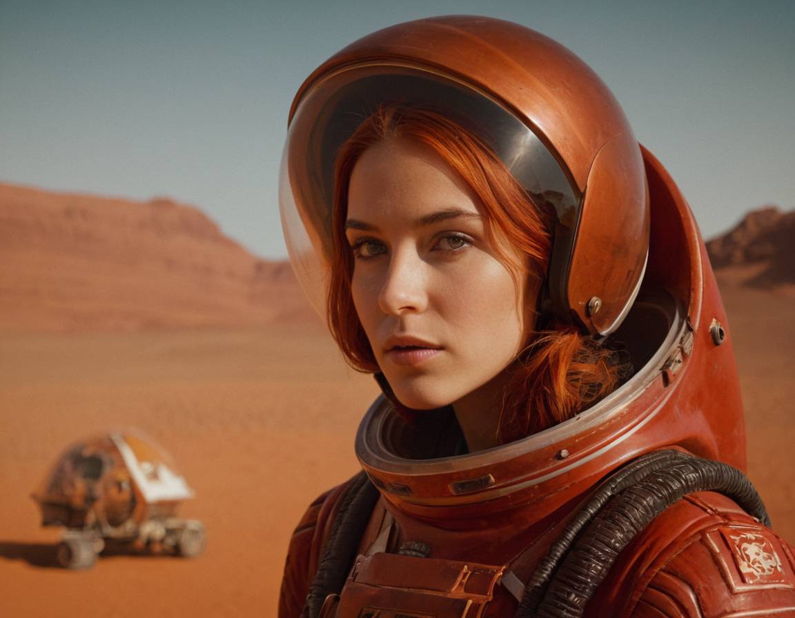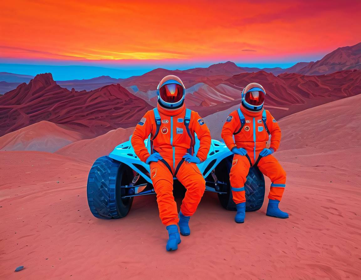 Вокруг царила невероятная красота, будто из другой футуристической реальности. Мы будто бы попали в научно-фантастический фильм в качестве главных героев. Жёлто-коричневая поверхность Марса была неровной: повсюду на панораме возвышались горы или виднелись впадины. Небо было красноватого оттенка, близкого к цвету крови – это немного пугало. Помимо синего Солнца на небе можно было заметить ещё два космических тела: спутники Марса Фобос и Деймос. Они коричневого и белого цвета.