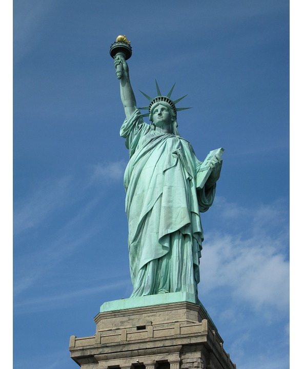 Статуя Свободы считается символом свободы и демократии Америки. Статуя держит факел в правой руке и скрижаль в левой.