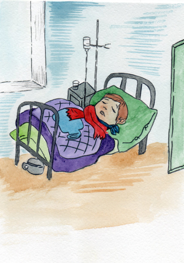 Однажды зимой, когда выпало много-много снега, Алёна заигралась с ребятами во дворе. Они катались на санках с небольшого пригорка, лепили снеговика и кидались снежками. Сначала девочка вспотела, но затем, когда подул морозный холодный ветер, она переохладилась. Уже к вечеру девочка ослабела и плохо себя чувствовала.