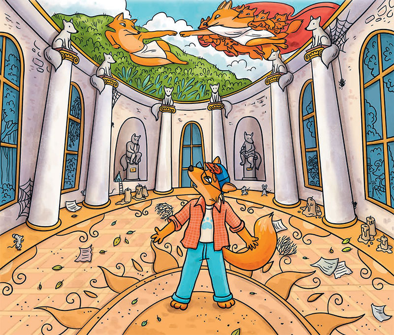Изо всех сил лисята навалились на резное полотно двери, и, хотя это было непросто, кое-как им удалось ее сдвинуть. Дальше было легче – дверь подалась и пошла на скрипучих старинных петлях. Но тут Шустрик прищемил себе дверью хвост и вскрикнул. «Совсем как мама», – подумал Мудряш, бросаясь помочь брату.