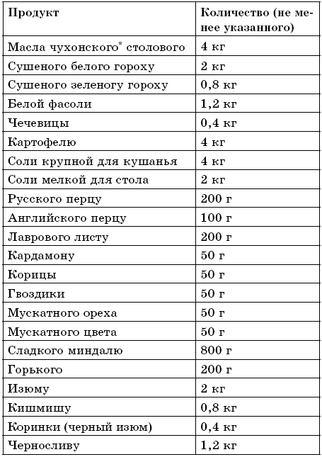 Для выдачи провизии хозяйкам следует иметь в кладовой: во-первых, столовую ложку (серебряную, мельхиоровую, никелированную, но только не оловянную); во-вторых, медный или жестяной гарнец (в мелочных лавках называется «большая мерка»); в-третьих, обыкновенный стакан средней величины. Таких стаканов в одной «двадцатой» бутылке из-под столового вина будет три; в старинном штофе, т. е. в двух «двадцатых» – шесть, следовательно, в одной четвертной – пятнадцать.