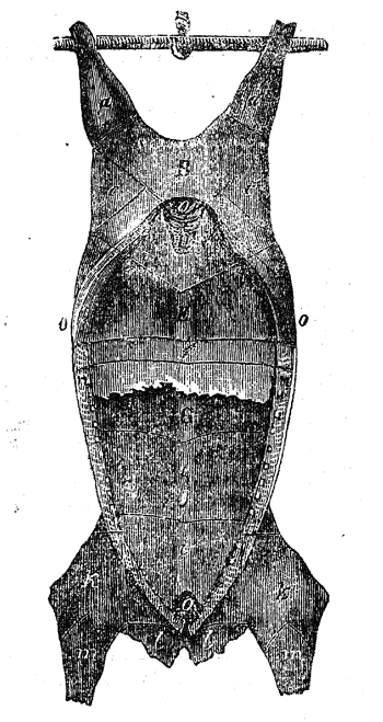 Фиг. 3-ья есть та же туша, изображенная только боком, для большей ясности описания ее отдельных частей.