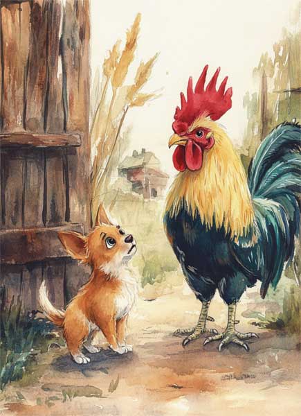 Зато его заметил дворовый забияка петух Пётр.
