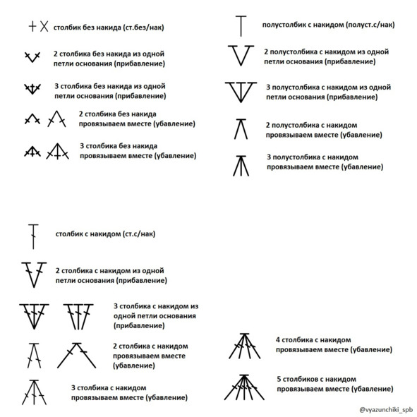 2 ст. с/нак вместе – два столбика с накидом провязываем вместе (убавление)