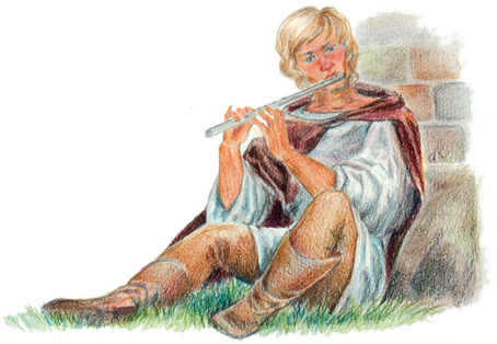 Девушка заслушалась. Никогда еще не слышала она такой волшебной музыки. Наконец Андрес положил флейту на колени и прислонился к стене замка. И тут Элиза позвала его:
