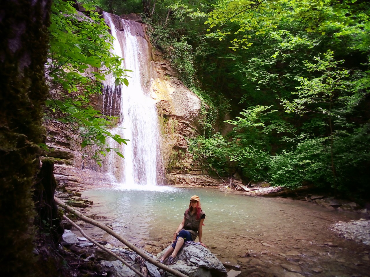 Проще уже и вовсе не спать. Когда стало светлее, пошли на лагуны. Егерей ещё нет – прошли спокойно. Гарик живёт на горе на третьей лагуне, но сейчас дошли только до водопада возле первой. Над водопадом Гарик показал мне уютное местечко. Я поставила палатку и рухнула спать, а он уехал аскать3 в Анапу.