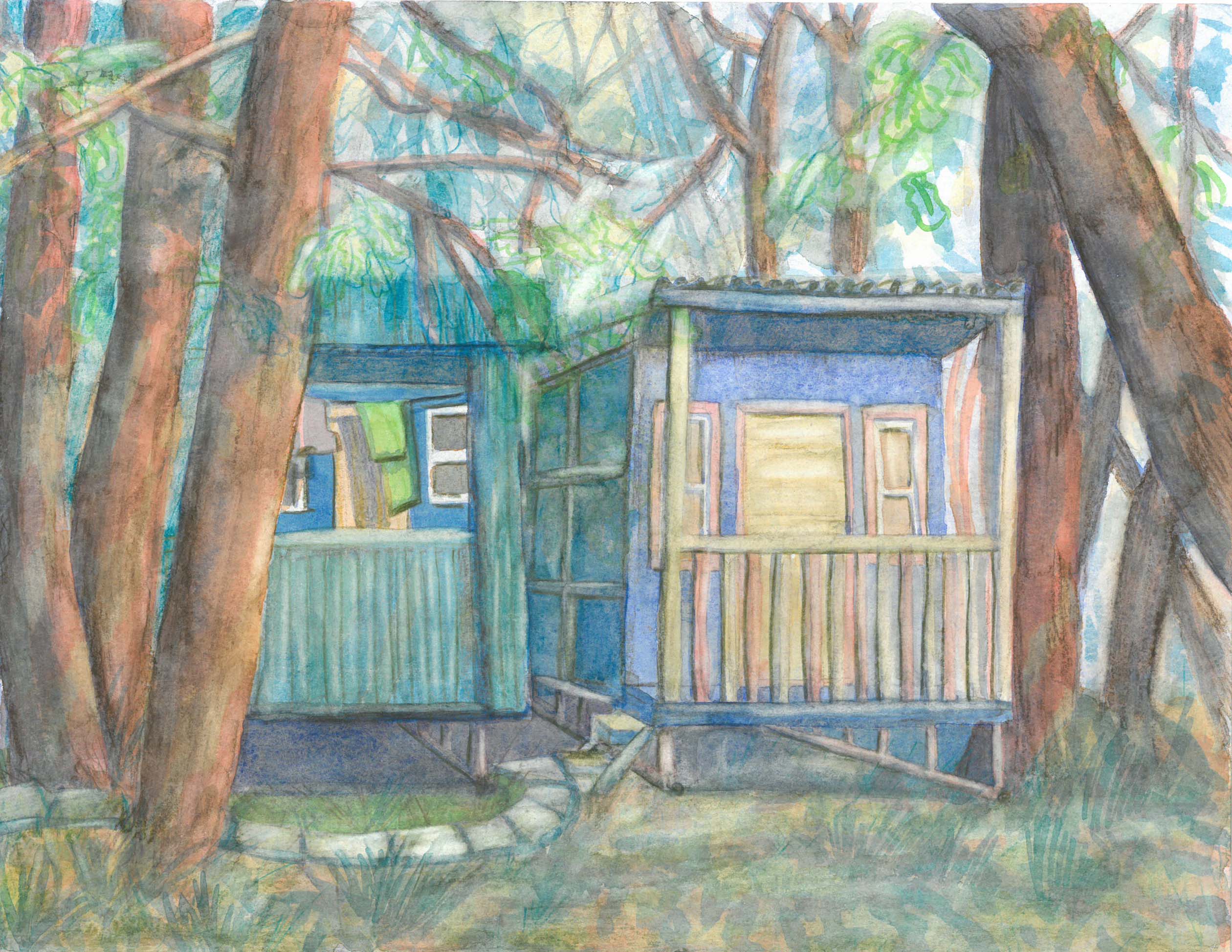 Разумеется, дети вели себя очень даже прилично. Они висели на заборе, лазали по крыше беседки, раскрашивали стены бани в разные красивые цвета.