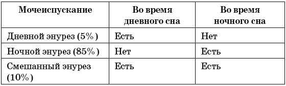Таблица 2. Классификация энуреза по типам мочеиспускания