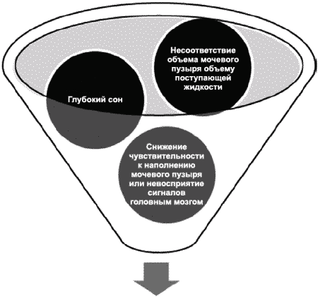 На рис. 2 показаны три основные составляющие ночного недержания мочи. Каждая из них имеет много причин, которые мы разберем ниже, но суть заболевания заключается в сочетании нескольких причин из каждого блока. Два этих блока рассмотрены в табл. 3, 4. О проблеме глубокого сна подробно рассказывается в разделе «Профундосомния» второй части книги.