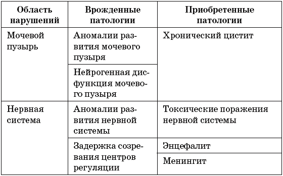 Вывод: энурез в большинстве случаев не является диагнозом, если так можно выразиться, «одного специалиста». Это скорее показатель нарушения слаженной работы всего организма в целом. Причин этих нарушений великое множество, их мы и рассмотрим.