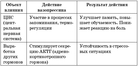 Таблица 8. Воздействие вазопрессина на организм