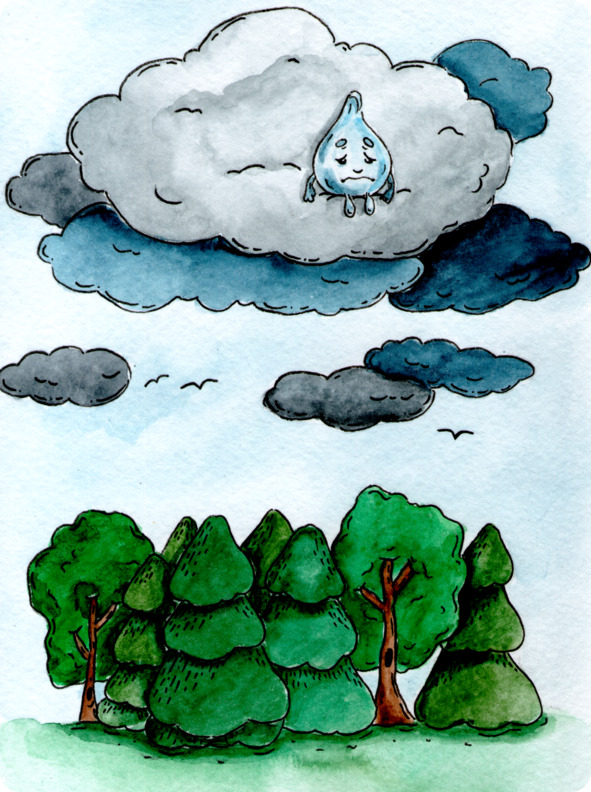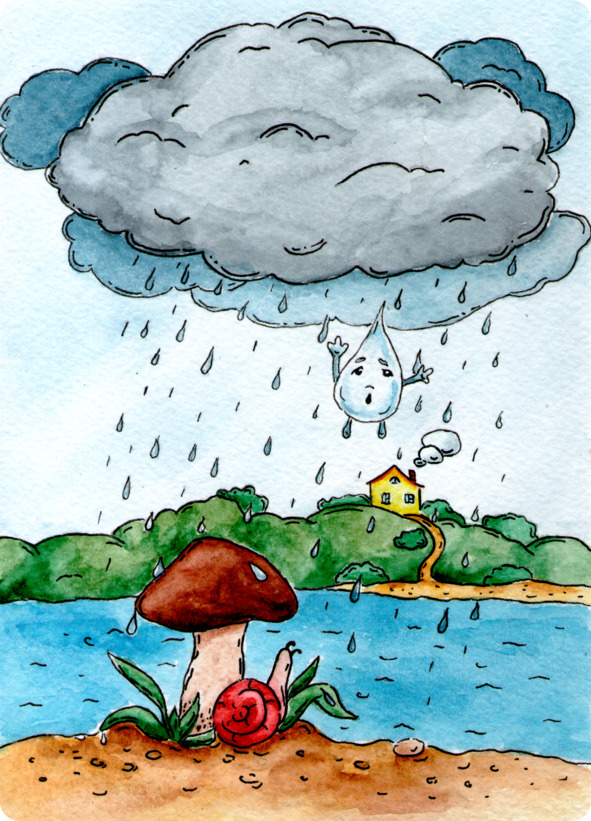 Она очень хотела оказаться в реке и жить там, в её водах, свободной и счастливой. Капельке совсем не нравилось находиться в хмурой тучке.