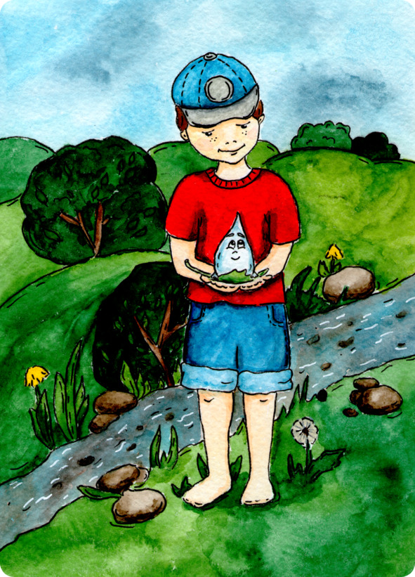 Когда к мальчику подошла мама, он попросил её пойти с ним к ручейку и запустить лодочки – мама согласилась. Шустрый мальчик подбежал к тому самому кустику, где пряталась от солнышка капелька-дождинка.
