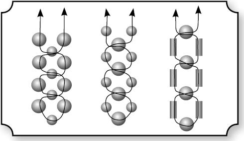 Несколько нитей из бисера или стекляруса можно собрать вместе, пропустив их концы через крупные бусины и закрепив замочки (рис. 4).