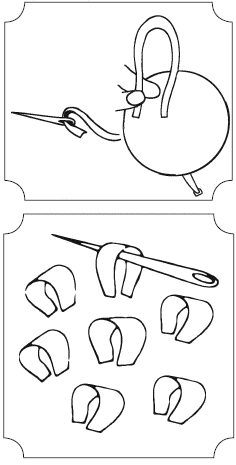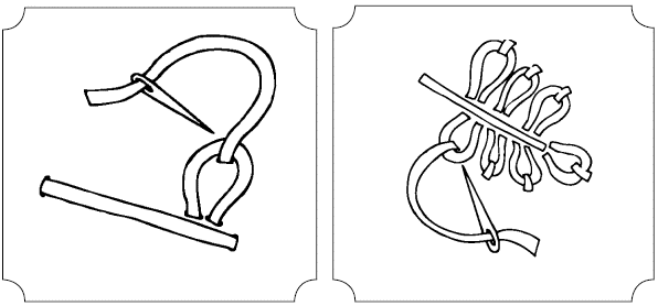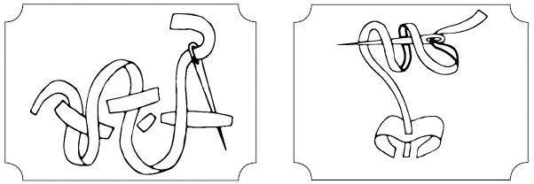 Когда иголка выходит на изнанку, следи, чтобы она не прокалывала ленточки на изнаночной стороне. Сделав желаемое количество петелек, закрепи ленточку на изнанке. Делается это так: ленту, выведенную на изнанку, перевивают с некоторым количеством изнаночных стежков, а потом обрезают.