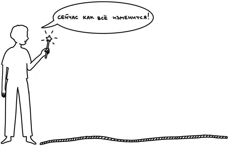 Безусловно, людям свойственно надеяться на чудо и в менее экстремальных случаях: например, когда мы хотим существенных изменений, но их нельзя добиться по мановению волшебной палочки, они требуют от нас кропотливого труда. Внутренний протест против действий превращает нас в маленьких детей, жаждущих родительской заботы, наставничества, помощи. Иными словами, нам нужен тот, кто исполнит желания, сделает за нас хотя бы часть работы (а лучше – всю).