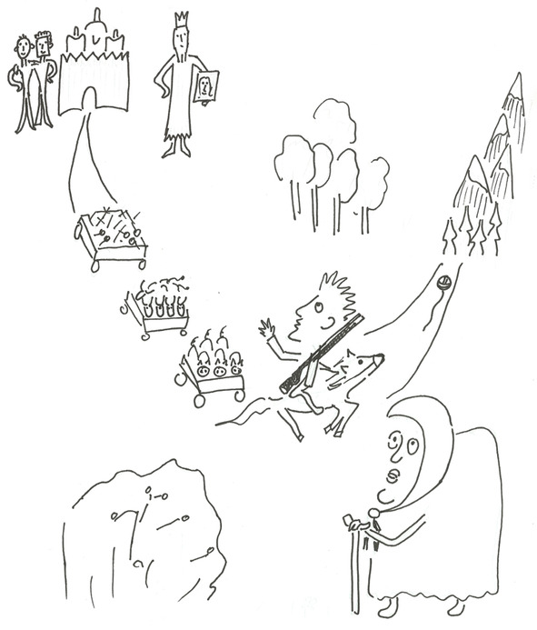 Ехали они лесами, горами, долами. Долго ехали, и вот спрашивает ослик у Аскеладена, не видать ли чего впереди.