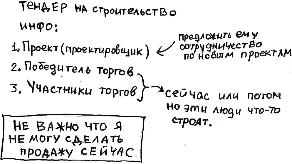 3. Сходили к проектировщику на презентацию ваших материалов касательно возможности заложить что-нибудь в его проект, по тендеру, который уже выигран.