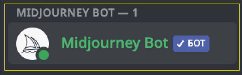 6. Откроется список пользователей, выберите Midjourney Bot: