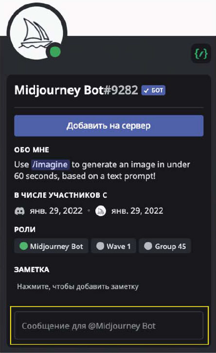 Это и будет началом вашего знакомства с нейросетью Midjourney.