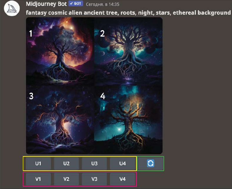 Все скриншоты сделаны из дискорда Midjourney.