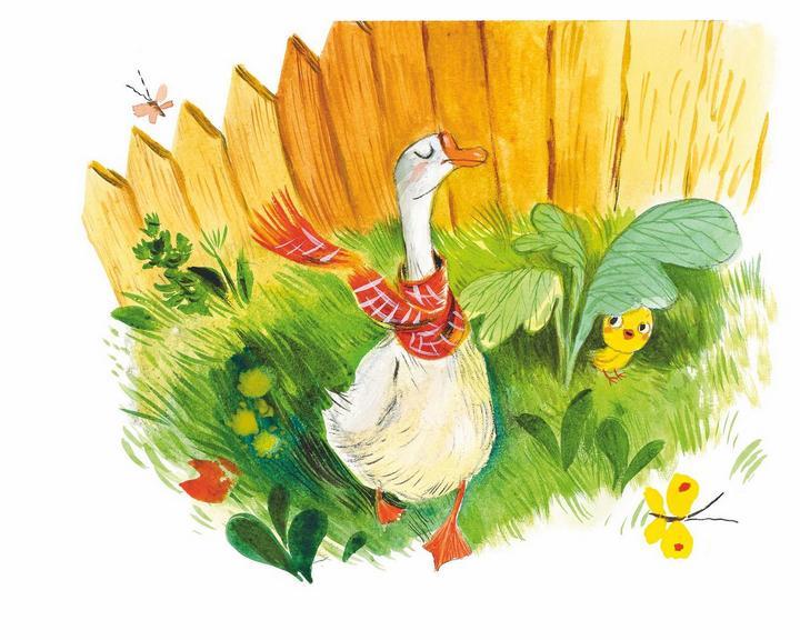 Большой серый Гусь сердито посмотрел на Цыплёнка и зашипел: