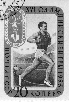 Бегун. Советская марка в честь Олимпийских игр 1956 г.