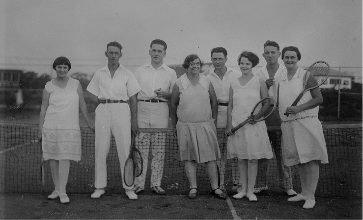 Группа теннисистов на корте в г. Мунго (Суринам). 1929–1930. Groepsportret op de tennisbaan van Moengo, anonymous, 1929–1930. Purchased with the support of the Maria Adriana Aalders Fonds/Rijksmuseum Fonds