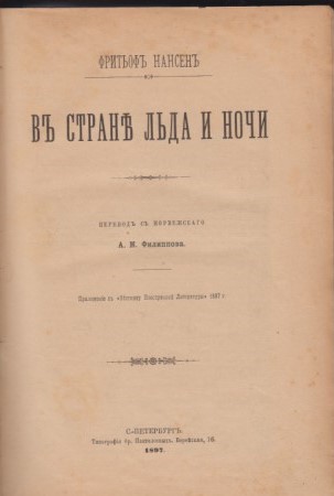 Книга Нансена, подаренная им П.С. Смирнову и Ф. Нансен з-на Земле Франца Иосифа после похода на Северный полюс