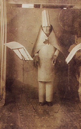 Хьюго Балл в костюме жреца дадаизма. Кабаре «Вольтер», Цюрих. 1916