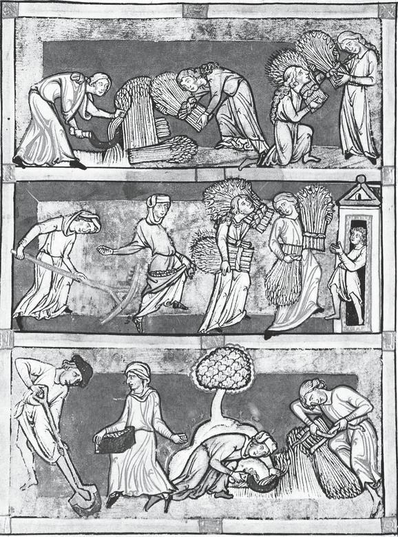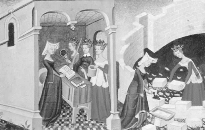 Однако это формально, а фактически женщины не только составляли половину населения, но и совершенно официально выполняли всевозможную работу, владели имуществом, в том числе и землей, заключали сделки купли-продажи, составляли завещания, а в отдельных (и не таких уж редких) случаях были налогоплательщиками. А для Средневековья быть налогоплательщиком – это значит быть в некотором смысле юридической единицей, потому что налог платился с домохозяйства в целом, и платил его глава семьи. Впрочем, о юридическом статусе женщин и о том, как решался вопрос об их профессиональной деятельности, речь пойдет дальше, сначала надо разобраться, какое же место женщины занимали в социальной структуре общества.