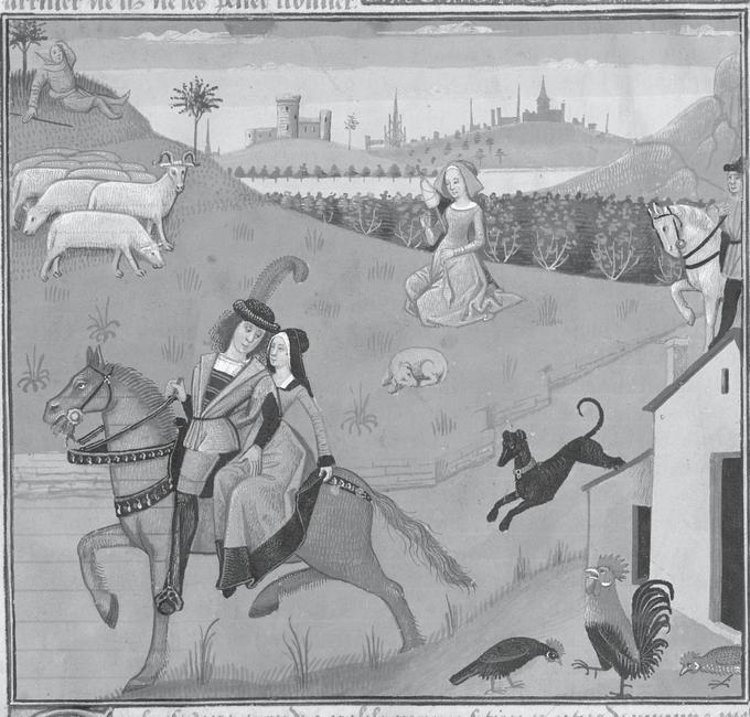 Девицы, замужние и вдовы, аллегория, фрагмент манускрипта рубежа XIII–XIV вв., Германия.