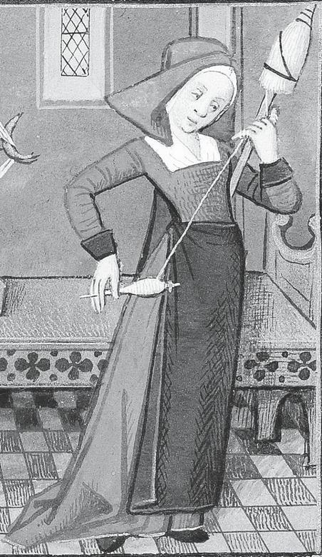 Женщина с прялкой, «Роман о Розе», манускрипт 1490–1500 гг., Франция.
