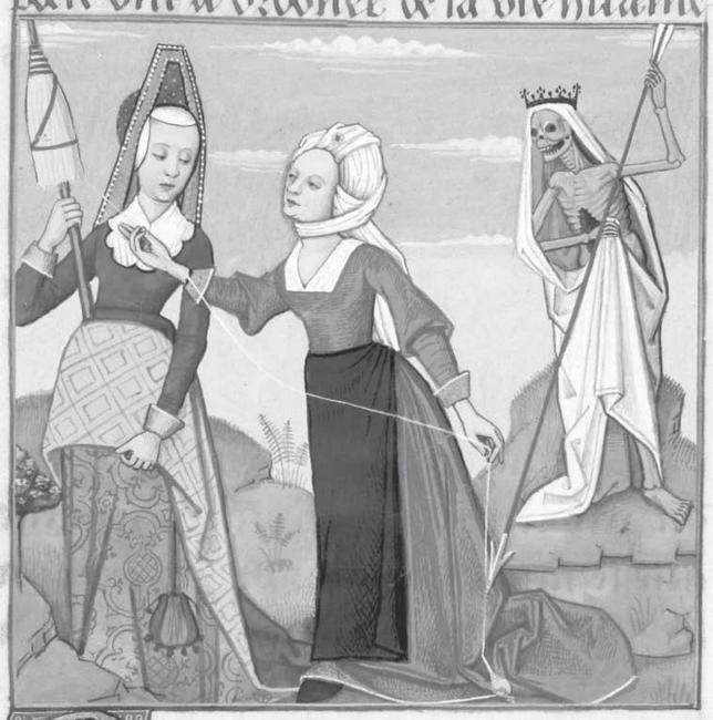 Муары, божества Судьбы. Миниатюра из «Книг любителей шахмат» Эврара де Конти. Тестар, Робине